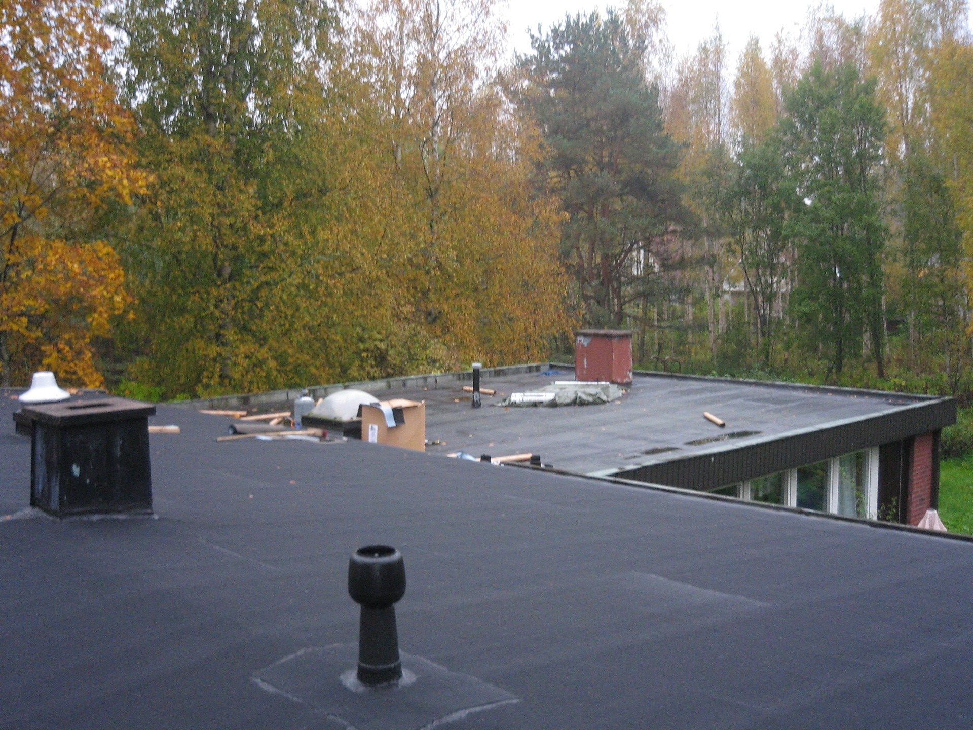 Kohde:vanhan Bitumikermikaton uusiminen uudet läpiviennit pellitykset ja massaukset.